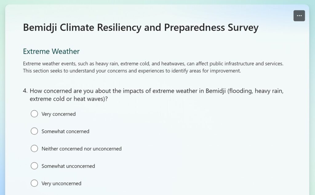 At Moore Engineering, our mission is to improve lives by building strong communities. For the City of Bemidji’s Climate Resiliency and Preparedness Plan, this meant listening to the people who experience the effects of extreme weather firsthand. As with other MN communities today, residents can face flooding, extreme heat, and harsh winters, and their insights provide an important lens for planning a resilient future. Moore Engineering led a multi-platform engagement campaign to ensure that the plan reflected these lived experiences, creating a strong foundation of community input to inform engineering and policy decisions.