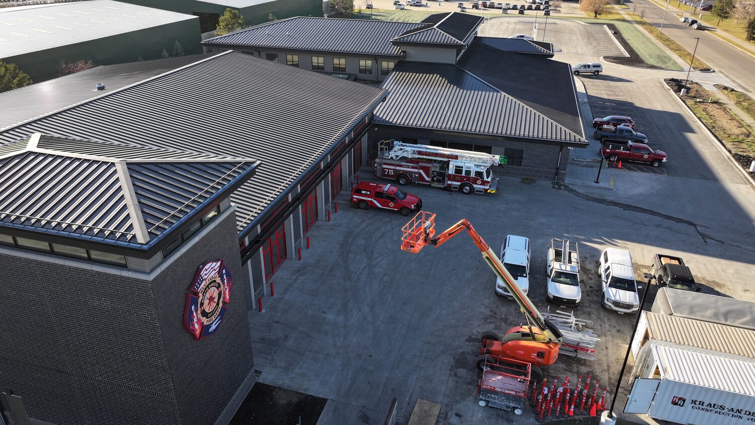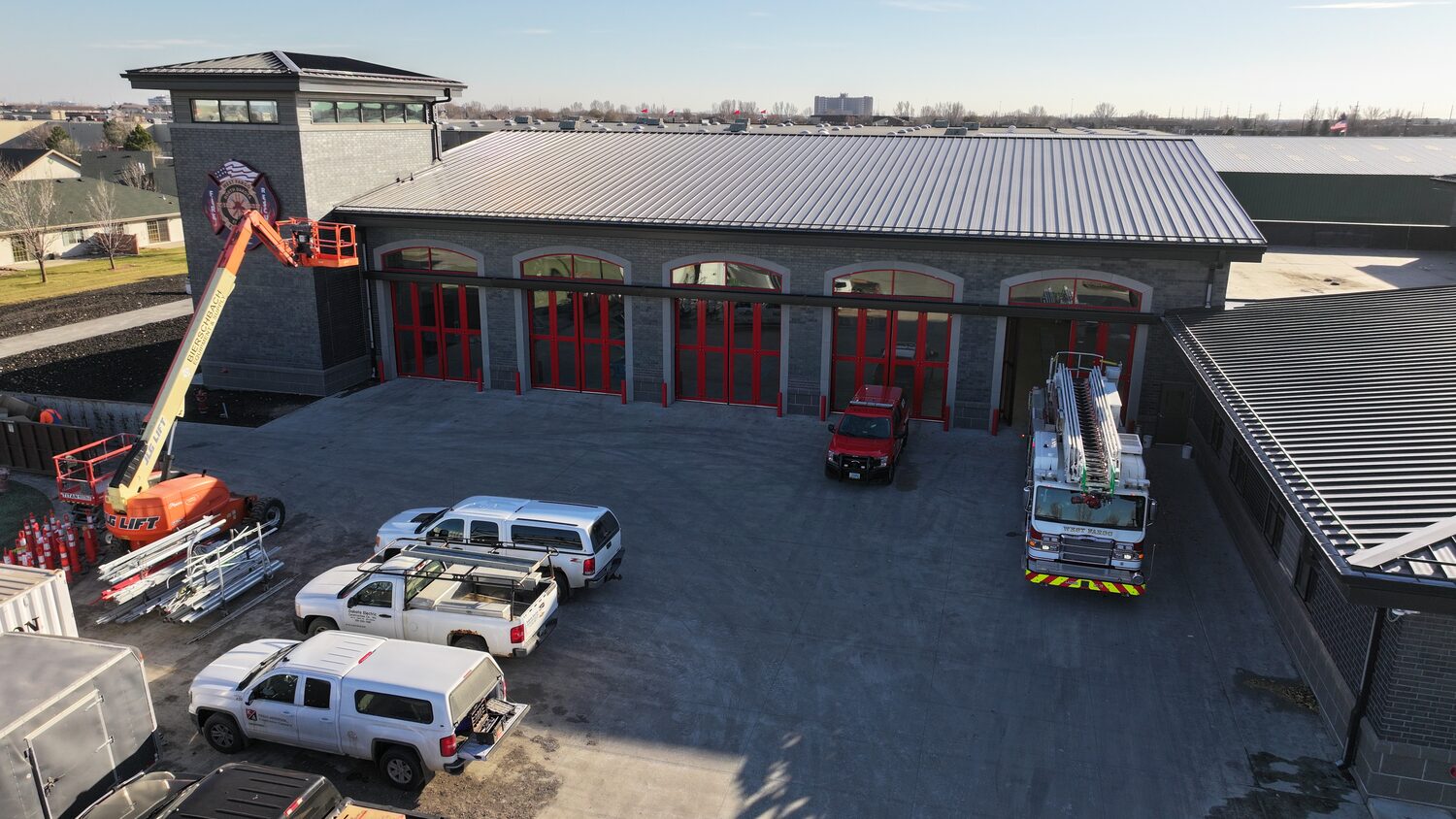 The 4-acre site required meticulous planning to ensure efficient access for emergency vehicles. Separate driveways were designed for fire vehicles and personal vehicles, with a large turning loop incorporated to minimize the need for backup maneuvers. Vehicle circulation and parking areas were graded and paved to support the heavy load of fire department apparatus while optimizing access. To manage stormwater, detention basins were incorporated into the design, reducing the need for extensive storm sewer piping and maximizing green space.